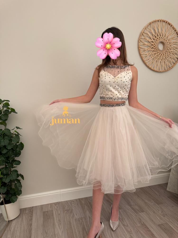 • طقم نسائي قطعتين مزود بتنورة واسعة تمنحك حرية الحركة وتضفي لمسة ملكية على الإطلالة