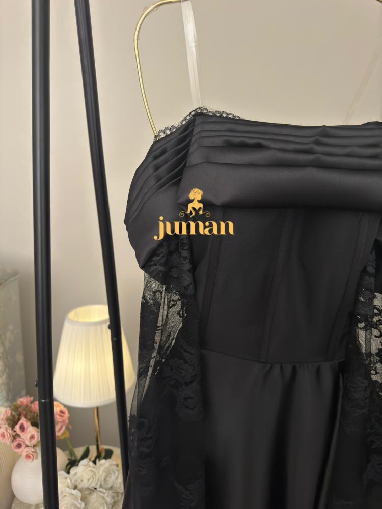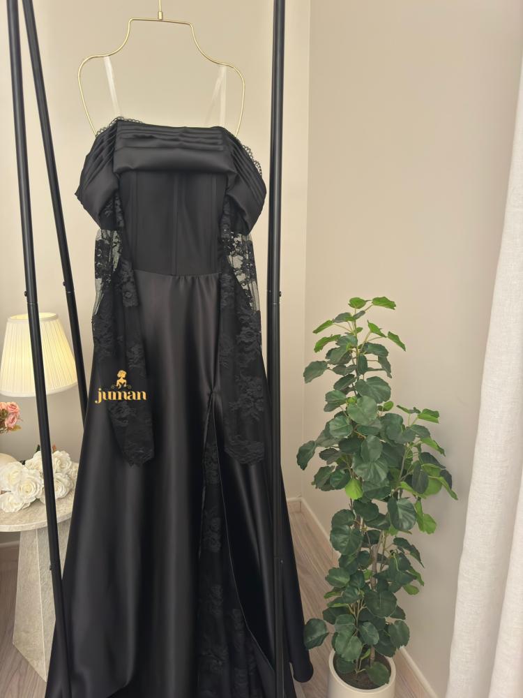 • فستان اسود سهره يتميز بتصميم راق يبرز جمالك ويمنحك إطلالة فخمة في المناسبات الراقية.