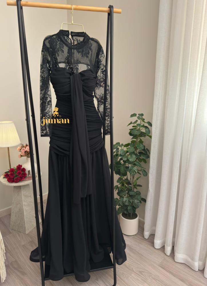 • فستان اسود شيفون بتصميم فاخر يجمع بين البساطة والفخامة ليمنحك إطلالة متألقة في المناسبات