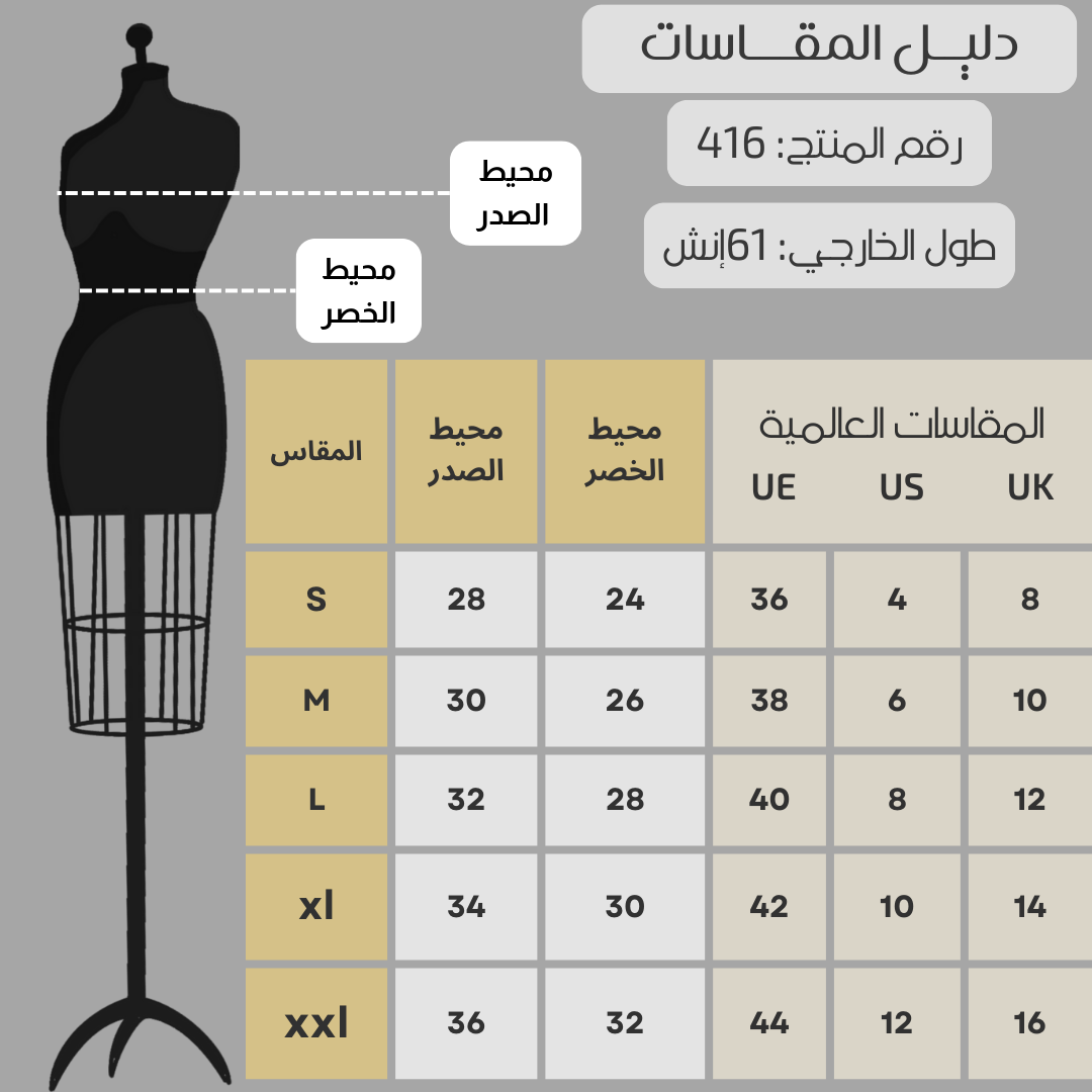 - يأتي الفستان بقصة تحدد الخصر مما يجعل شكل الجسم جميل ومتناسق