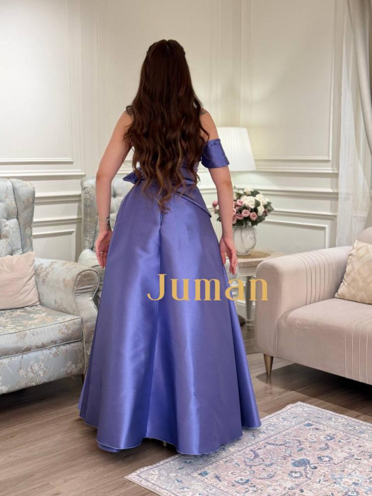 - يأتي الفستان ب فيونكه من الجنب تضيف له طابع من الشياكة والرقى